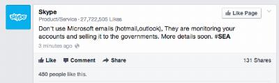 repeated the messages that were posted on Skype's social media profiles and blog.