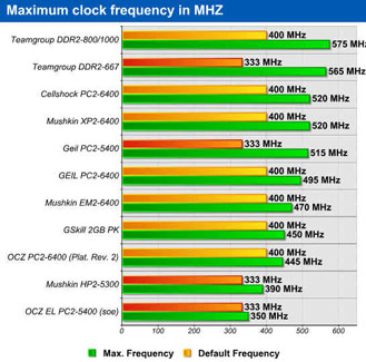Looking at the DDR2-667 category, only two kits out of the four tested reached