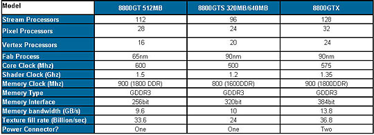 The GeForce 8800 GT sports a 100 MHz speed bump over the 8800 GTS, and comes factory clocked at 600 MHz. The 600 MHz clock speed of the 8800 GT is actually 15 MHz higher than the 8800 GTX's default GPU clock, which is set at 575 MHz. The 8800 GT's clock speed also comes within striking distance of the GeForce 8800 Ultra's 612 MHz GPU clock speed. The NVIDIA GeForce 8800 GT features 112 stream processors, 16 less than the 128 stream processors found on the ultra high-end 8800 GTX and 16 more than the 96 stream processors found on NVIDIA's 8800 GTS. The stream processors of the 8800 GT come clocked at 1500 MHz, the same speed as the stream processors of the GeForce 8800 Ultra. Comparatively, the GeForce 8800 GTX comes with its stream processors clocked at 1350 MHz while the 8800 GTS' stream processors are clocked at 1200 MHz.