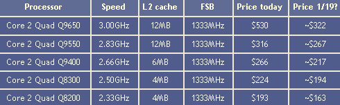 of Core 2 Quad processors. The cuts will also hit equivalent Xeon X3300-series