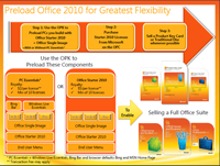 $2 per copy of Microsoft Office Starter 2010, if they pre-install the Bing bar and Windows Live Essential. PC makers can also opt to not install the Bing bar and Windows Live Essentials, but will pay $5 per copy of Microsoft Office Starter 2010. A significant price difference when PC makers are purchasing licenses in very large quantities.